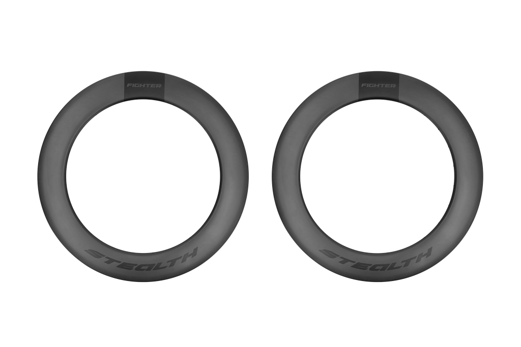 De Stealth Fighter: hierbij draait alles enkel om seconden en snelheid. De velg is zo gevormd dat de luchtweerstand zo laag mogelijk wordt gehouden. Door de bolvormigheid van de velg heeft het wiel een ongeziene aerodynamica zonder veel problemen te ondervinden van zijwind. De Fighter heeft zelfs minder zijwinddruk dan vele V-vorm velgen van 60mm hoog die op de markt verkrijgbaar zijn. Door deze nieuwe technologie kunt u de Fighter meer gaan gebruiken dan ooit te voor! De Fighter is net zoals de Nighthawk 35, Raptor 50 en de Shadow 62 vernieuwd naar een Mini Hooked velgbed. Hierdoor ligt de band minder in de velg getrokken en houdt hij zo zijn vorm beter aan. Dit zorgt voor nog meer stabiliteit in de bochten en een betere aansluiting voor het tubeless leggen. De Fighter is de perfecte wielset voor triatleten waar alles om cijfers draait en elke seconde telt. En dit tegen een schappelijke prijs. Dit wielset kan ook gebruikt worden in combinatie met een andere hoogte qua voorwiel. Bijvoorbeeld een Raptor 50 of de Shadow 62. Zo creëer je één van de snelste wielsets die op de markt verkrijgbaar zijn!